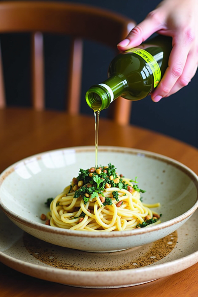 10. Top Grains and Pasta: Drizzle EVOO over hot grains or pasta, then stir to distribute for enhanced flavor and sheen.