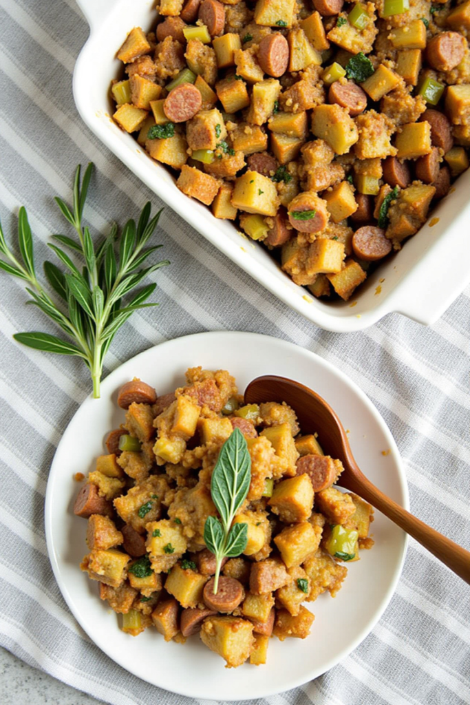 - Italian Sausage & Spinach Stuffing: Brown sausage, mix with 1 cup fresh spinach and base veggies, season with Italian herbs.