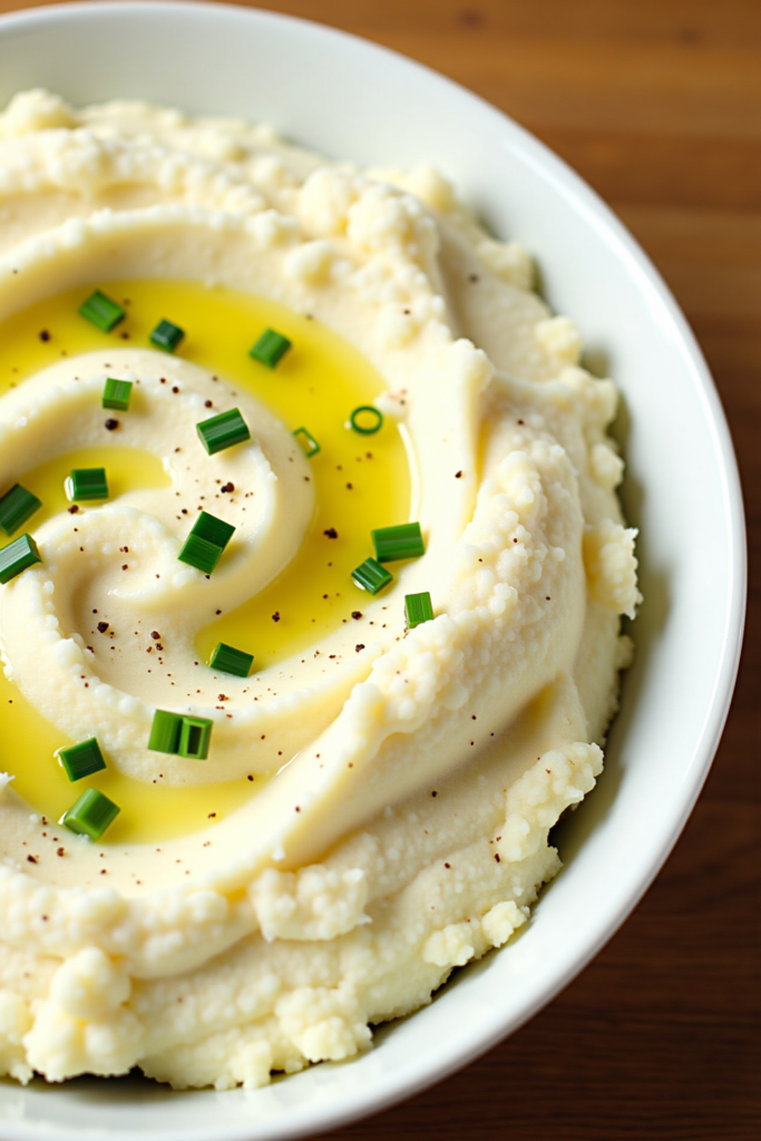 - Make Cauliflower Mash: Steam cauliflower florets until tender (about 10 minutes). Drain and blend with cream cheese, butter, heavy cream, salt, and pepper until smooth. Serve warm.