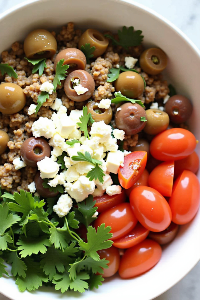 Achieving maximum flavor is all about layering. Sauté garlic and onion for aromatic depth, then brown ground chicken for hearty umami base notes. Toss in sun-dried tomatoes for sweetness and add pitted olives for a punchy, tangy contrast. Finally, a crumble of feta and a sprinkle of fresh herbs bring everything together in true Mediterranean fashion.