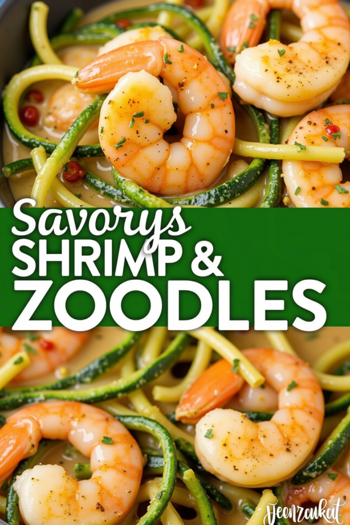 - Return the shrimp to the skillet and add the spiralized zucchini noodles. Toss gently to combine and cook for 1–2 minutes, just until the zoodles are tender but still slightly crisp.