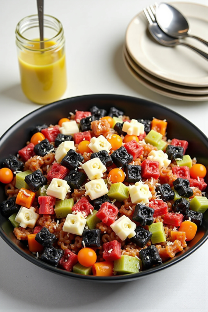 A delight for the eyes and taste buds, this Spooky Halloween Pasta Salad is playful, quick to assemble, and easily customized based on ingredient preferences and dietary needs—making it the ultimate Halloween meal addition.